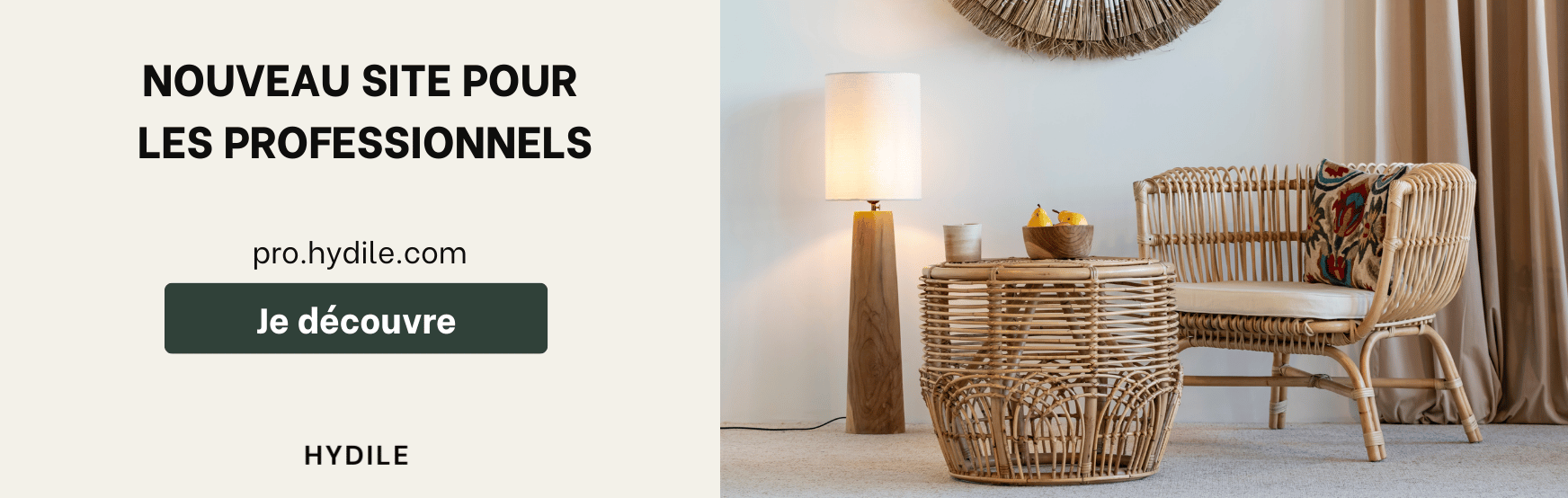 Hydile propose désormais un service de location de mobilier pour tous vos projets : mariage, shooting photo, événement professionnel, etc. Louez des pièces uniques en matières naturelles pour sublimer vos instants les plus précieux.