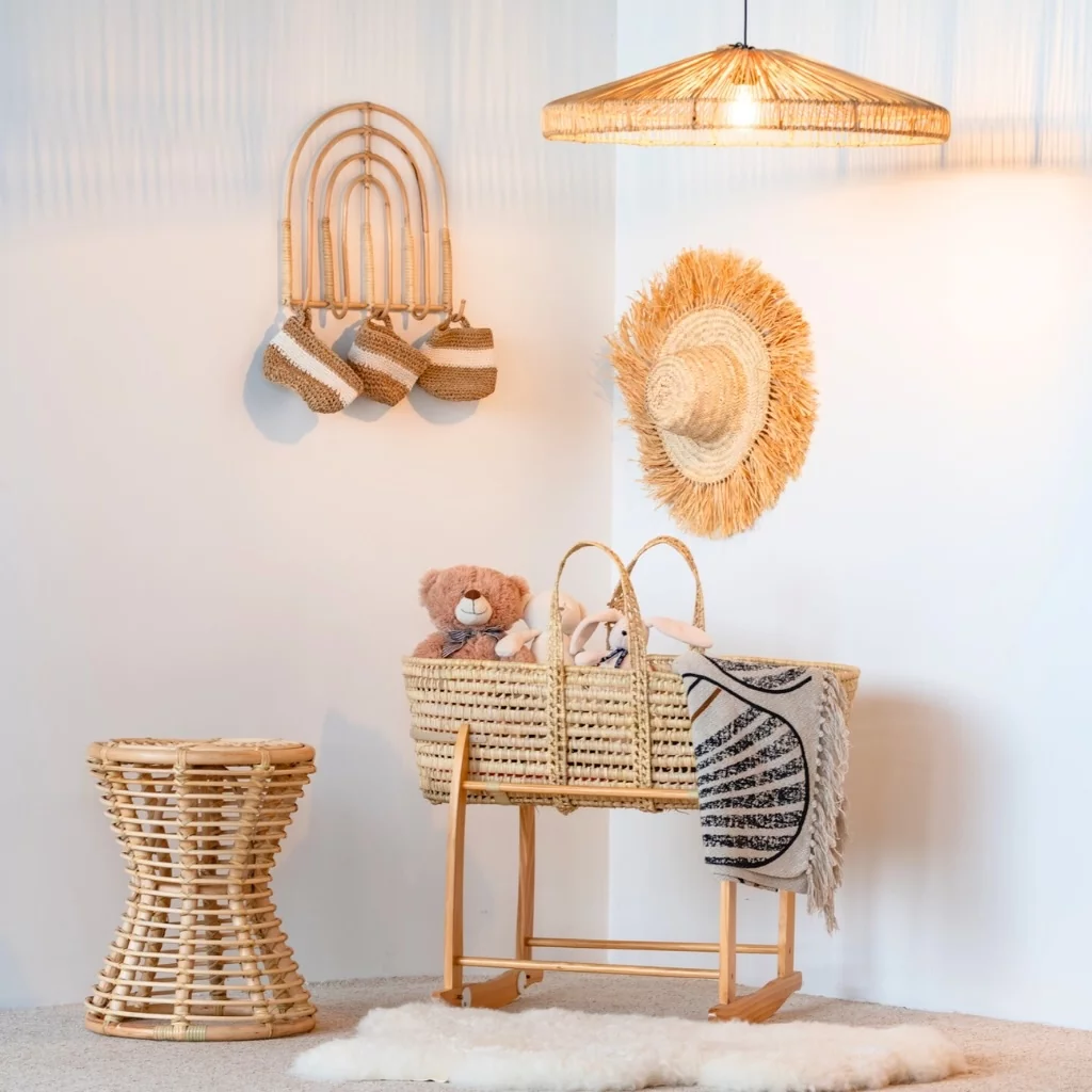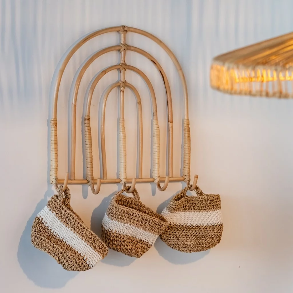 Une fois accrochée au mur, elle apportera une note de décoration naturelle et bohème, n'hésitez pas à l'associer avec des teintes colorées ou des cintres en rotin pour enfant.