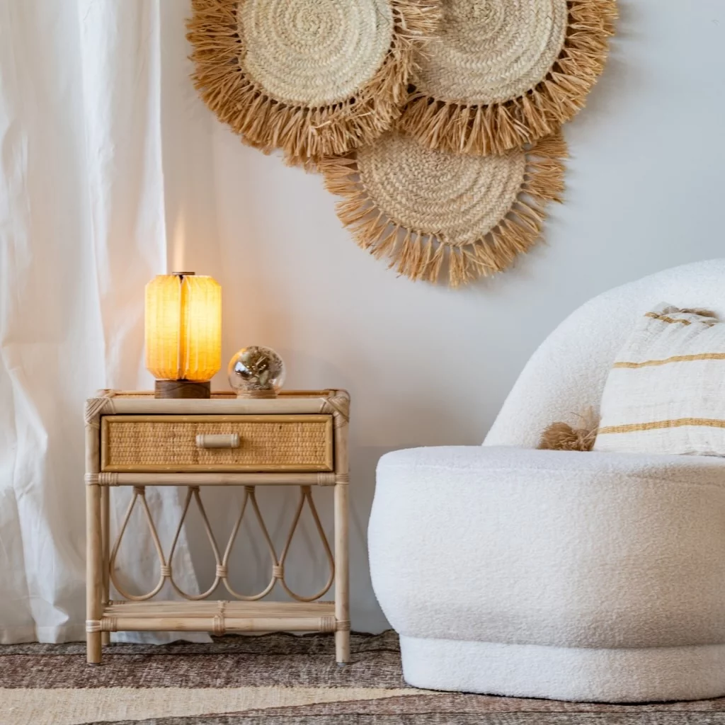 Un design naturel et raffiné Grâce à son rotin tressé à la main et son cannage ajouré, PRISCA apporte une atmosphère chaleureuse et apaisante à votre espace nuit. Son design léger s’intègre aussi bien dans une chambre moderne, bohème, scandinave ou vintage.